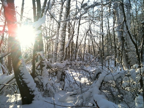 Snön lindrar krocken. Snön sprider ljuset. Skidåkning runt knuten. Gott nytt vinterår!