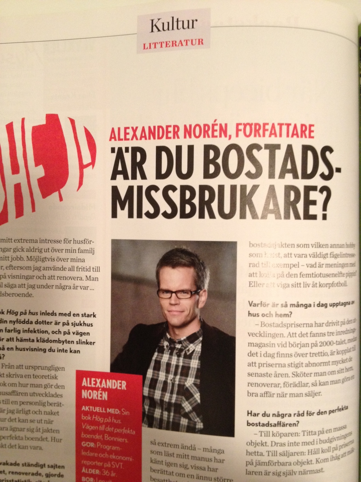 Men när min allra första intervju inför boken (”Hög på Hus”, Albert Bonniers Förlag, release 27/3) publicerades i tidningen Vi idag så ser jag att jag fått titeln ”Alexander Norén, författare”. Fint värre. Men ursäkta alla riktiga författare, om jag därmed råkat gå före i kön lite granna.