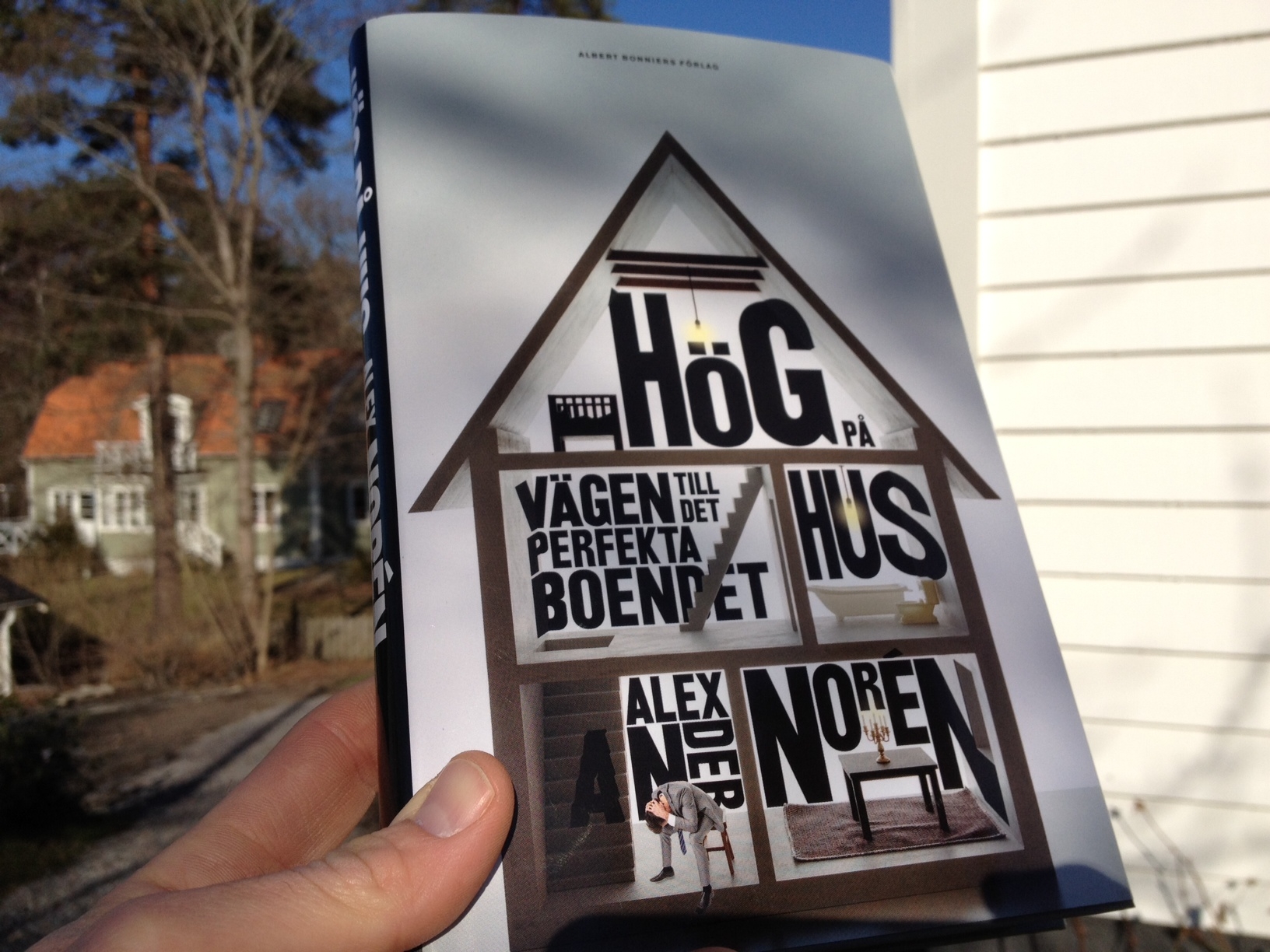 Nu är det på riktigt! Idag kom det ett rykande färskt förhandsex av boken budat hem till mig från förlaget. För första gången håller jag ett ex av ”Hög på Hus” i min hand och ser det konkreta resultatet av två års slit. Trots att jag vet vad som står på varenda sida, kunde jag inte låta bli att bläddra fram och tillbaka för att se hur texten ser ut ”på riktigt”. Det är något speciellt med hur orden och meningarna tar plats i den speciella form som enbart en bläddringsbar bok med en litteraturosande layout kan erbjuda.