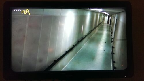 Kollar på dansk teve. Zappar in DR Update som jag trodde var en nyhetskanal, men matas av olika övervakningskameror från korridorer i typ övergivet sjukhus.