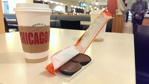 Efter intervjun bjöd hans Sally-Ann på godis som blivit över från Halloween. Hon hade köpt en hel kartong med choklad, men inga barn hade ringt på för ”trick or treat”, så hon insisterade på att vi skulle plocka med oss peanutbutter cups. Efter att ha tackat nej artigt tre gånger, tog jag emot jordnötscrèmechokladen.