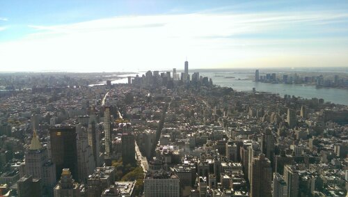 Måste ta mig igenom en labyrint av turistfällor i form av fotografering och annan försäljning av olika slag innan jag till slut får ställa mig i kö till hissen. Sedan av vid 80:e våningen, gå runt i ett museum jag inte har tid med, sedan ny kö för sista hissen. Detta tär på min knappa tidsbudget, hoppas det blir värt det..