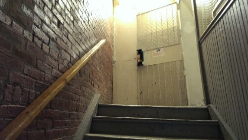 Trapporna upp till ArtNowNY, 548 W på 28:e är lovande slitna. Galleriet ska ha ”gained some serious street cred”, skriver de. Bra, om de bara haft öppet på måndagar…