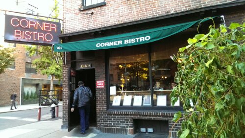 Går på US Airways-magasinets tips om att besöka Corner Bistro (331 W, 4th) som beskrivs som ”burger and beer joint… one of the last authentic bohemian bars in the area”. 5-10 minuters promenad i mysiga Greenwich Village.
