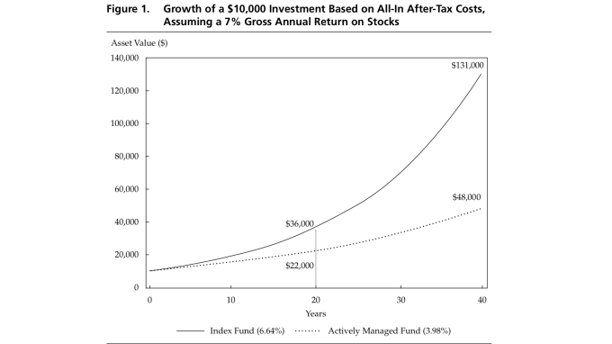 John C. Bogle, pionjären inom indexfonder som startade världens första indexfond i USA på 70-talet, räknar i en artikel vidare på Sharpes exempel och visar på hur skillnaden i avkastning egentligen är ännu större. I Sharpes räkneexempel inkluderades till exempel inte transaktionskostnader. Aktiva fonder omsätter portföljen ofta, till skillnad från indexfonder som behåller samma aktier och bara justerar innehavet då och då så att det fortsätter vara representativt för börsen i stort. Äkta aktivt förvaltade fonder (till skillnad från rötäggen som tar betalt för aktiv förvaltning men i själva verket i smyg levererar nästintill index) är just ”aktiva” och tvingas betala köp/sälj-avgifter varje gång de byter aktier i sitt innehav. Dessa avgifter drabbar också fondspararna, utöver den vanliga fondavgiften (som ska täcka förvaltarnas löner, fredagsöl och marknadsföring av fonden). Räknas dessa – och en del andra dolda kostnader in – så menar Bogle att den aktivt förvaltade fondens avgift i själva verket är drygt dubbelt så hög, och spararen får ut 65% mer i pension efter 40 års indexsparande jämfört med om samma pengar sparats i aktiva fonder med samma utveckling på börsen.