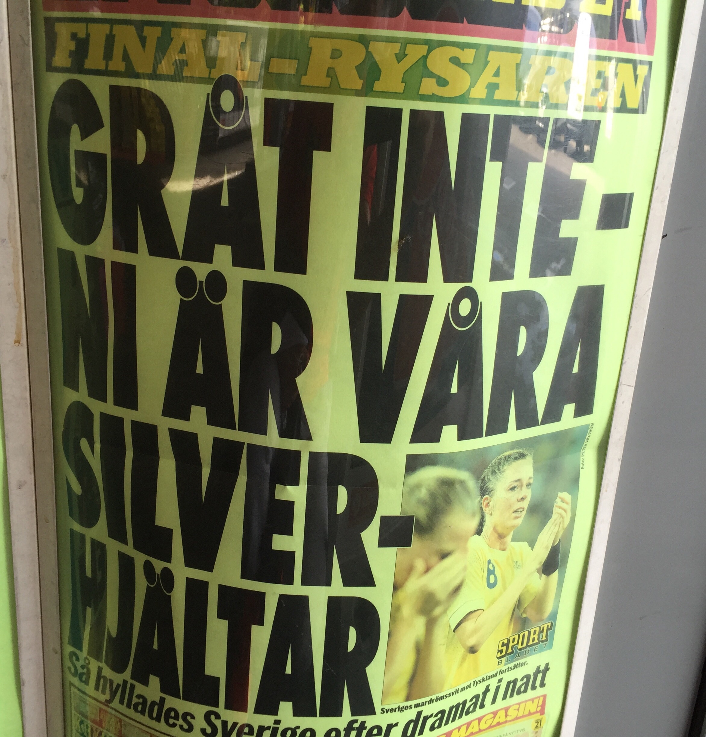 ”Är det ett silver vunnet?”. Reportern avslutar intervjun med Sveriges förbundskapten efter 2-1-förlusten mot Tyskland i OS-finalen genom att betona ”vunnet”.