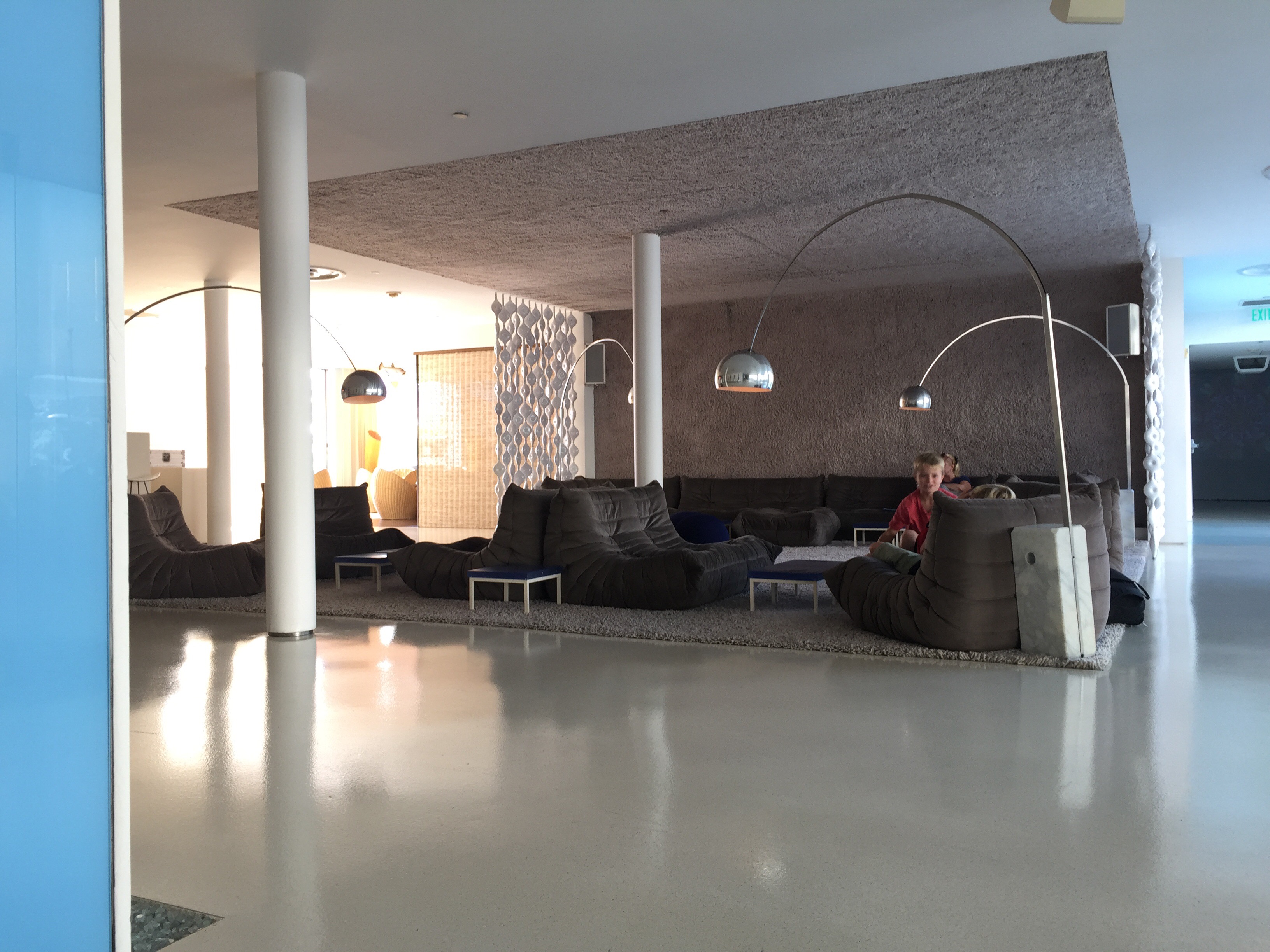 I receptionen till hippa hotellet The Standard i LA där modeller sitter som en installation bakom en glasvägg på kvällarna och läser en bok, där New York Times ligger vid frukostbordet, där det finns två klockor på väggen: ”Here” (LA) och ”There” (New York), där folk behöver ha en viss inkomst för att ha råd att köpa in sig på coolhetsfaktorn, där står det en skål med knappnålar på incheckningsdisken. Knappnålar till stöd för en av de två presidentkandidaterna. Gissa vilken?