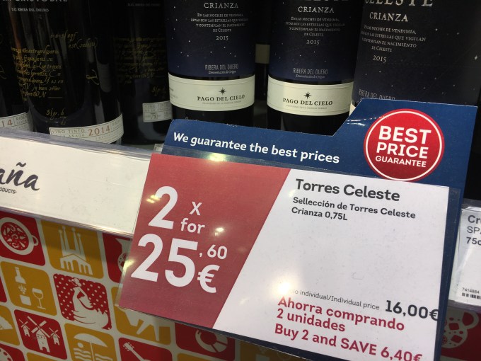 På Alicantes ”Duty Free” var jag på väg att plocka på mig en cava för 11€, men hejdade mig när jag mindes att just denna flaska endast kostade 8.95€ på det lokala snabbköpet.